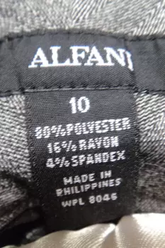 Pantalón Alfani, gris oxford, talla 10, corte recto, sin bolsas a los costados, en la parte de atrás tiene dos bolsas pequeñasMedidas:Ancho cintura: 40 cmsAncho cadera: 49 cmsLargo tiro a bastilla: 81 cms