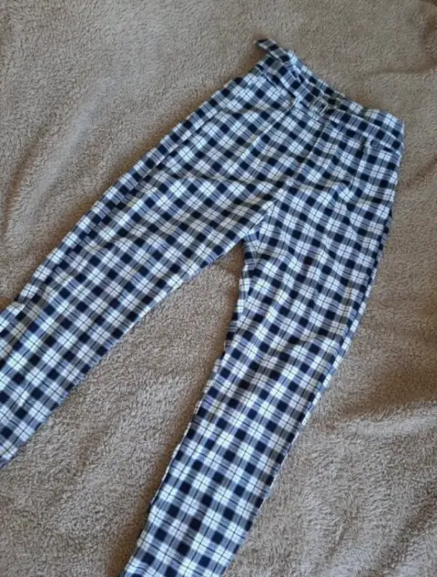 Pantalón High waist de bershka Tiro alto, slim fit, con cinturon, llega a los tobillos PUESTO 1 VEZ, EN PERFECTAS CONDICIONES, solo tiene un detalle en el cinturón que se ve en la última imagen (agujeros extra para el cinto)TALLA: 06 /28 Cintura: 67-72 cmsCadera: 95 cms