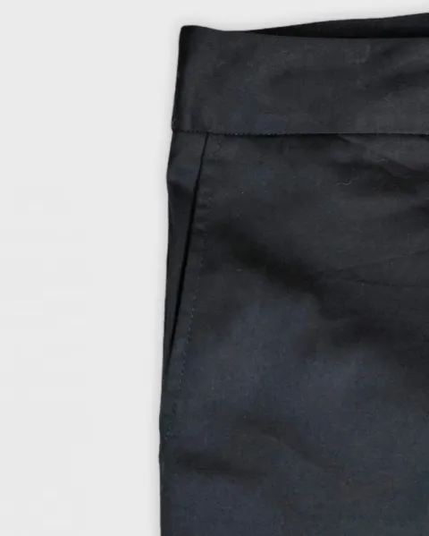 Pantalón de vestir en tela jaspe negro, es stretch talla XL, con bolsillos a los lados.