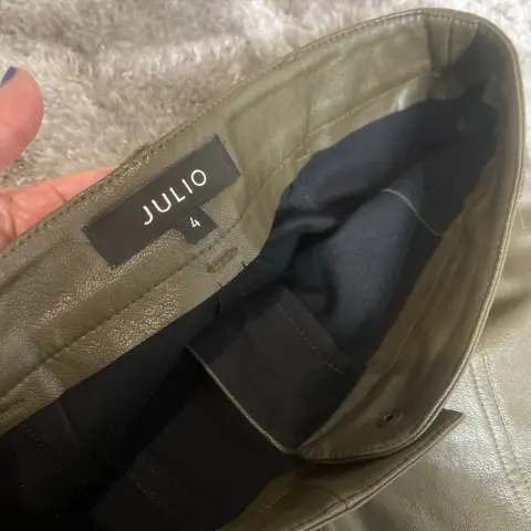 Pantalón Julio Olivo. Perfecto pantalón de piel en verde Olivo, liso, no tiene bolsas, solo tiene pinza en la parte de atrás, está hermoso! Me quedo grande, es talla 4 :)