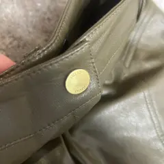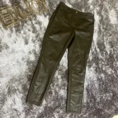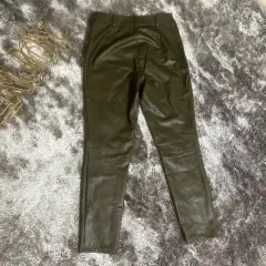 Perfecto pantalón de piel en verde Olivo, liso, no tiene bolsas, solo tiene pinza en la parte de atrás, está hermoso! Me quedo grande, es talla 4 :)
