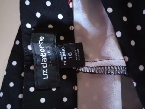 Pantalón Liz claiborne. Hermoso pantalón de vestirNegro con puntos blancos y flores rojas.Talla 16Puede usarse informal o formal.Con tenis o como tú gustes.Nuevo con etiqueta.