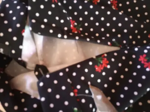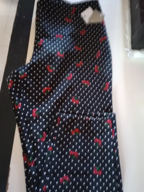 Hermoso pantalón de vestirNegro con puntos blancos y flores rojas.Talla 16Puede usarse informal o formal.Con tenis o como tú gustes.Nuevo con etiqueta.