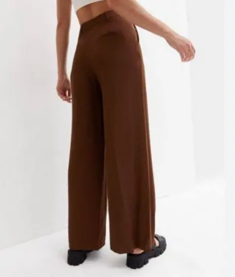 Bello pantalón café de vestir wide leg, llega a la cintura. Tela con peso, muy bonita, prácticamente no se arruga. Talla 28.
