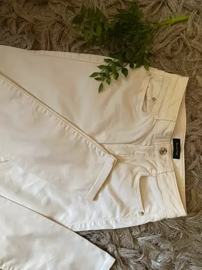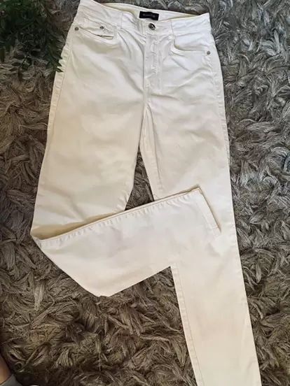 Hermoso pantalón tela tipo gabardina, suave, ligero pero no es transparente, tiene ligero stretch, color beige, talla 26 (S)