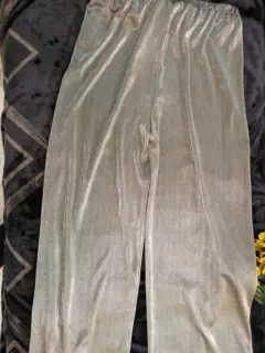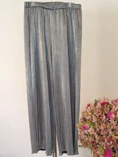 Pantalón metálico plata curvy, de resorte y pierna amplia recto, tela muy cómoda.