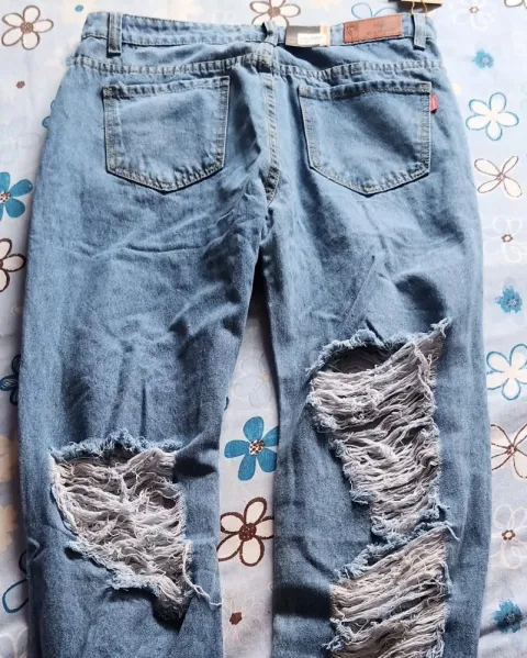 Lindo pantalón estilo desgarrado en corte recto, medidas: cintura: 82 cm, cadera: 106 cm, largo 100 cm