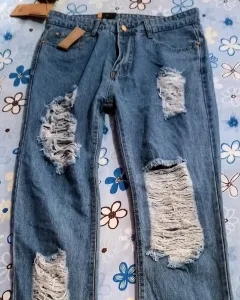 Pantalón mezclilla. Lindo pantalón estilo desgarrado en corte recto, medidas: cintura: 82 cm, cadera: 106 cm, largo 100 cm