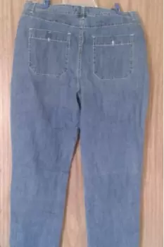Pantalón mezclilla George&Martha. Mezclilla nunca puede faltar en tu clósey.Pantalón de Dama Talla 12 (34/ 36 en talla mexicana) en buenas condiciones, 100% algodon.Cuenta con jareta en caso de no usar cinturòn se ve hermoso si lo atas con moño enfrente.Para toda temporada.