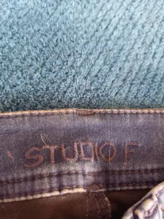 Pantalon mezclilla strech Studio F. Pantalon de mezclilla strech, Marca Studio F Talla S, al tobillo, Dama Petite