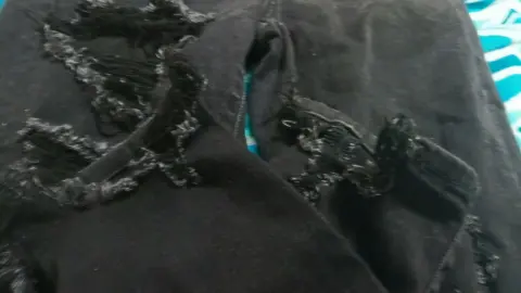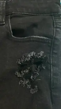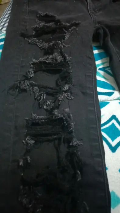 Pantalon mezclilla talla Ch American Eagle. Jeans mezclilla color negro a la moda marca American Eagle en buen estado, color sólido, rotos por moda.