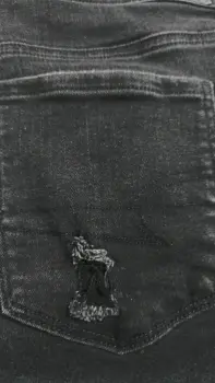 Jeans mezclilla color negro a la moda marca American Eagle en buen estado, color sólido, rotos por moda.