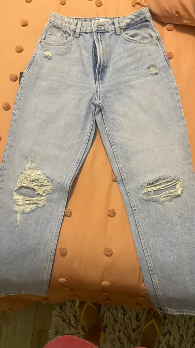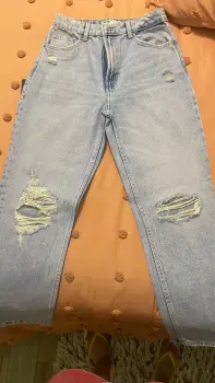 Pantalón Mom. Pantalon apretados de la cintura y flojo de abajo