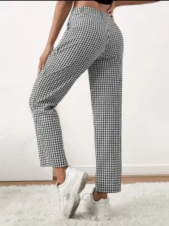 Pantalón Mujer cuadros. cuadros blanco/negro.Talla grandeNuevoSheinrecto100 % polyesterbolsasusar con cinturón