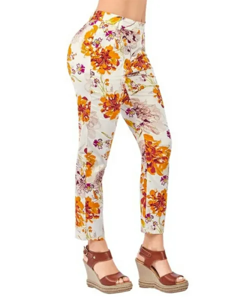 Pantalon para dama en color ivory multicolor, con diseño floral, tela gabardina stretch, cómodo. Material:97% algodón 3% elástano.Le queda mejor a una chica que sea caderona ,aunque se presta ñara ajustarte.La tela es muy fresca y el estampado se ve divinooo.Sin duda un prenda que debes de tener en tu clóset.Cintura:37 cmCadera :45 cmLargo :92 cm