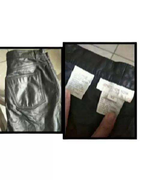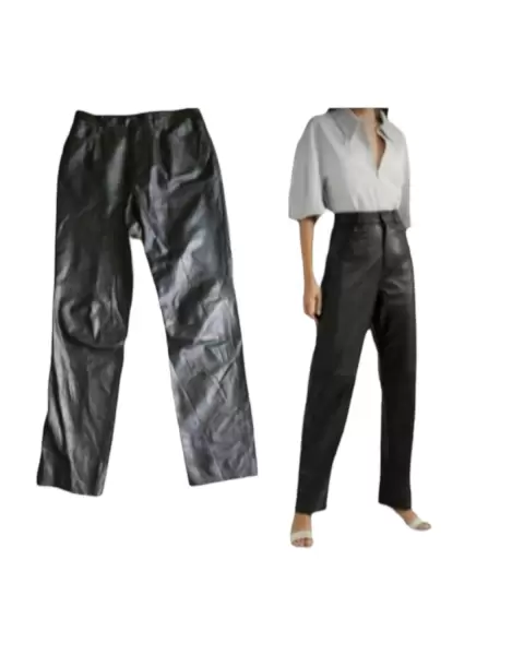 Pantalón negro 100% piel. ◾Marca Jones New York◾Talla 10◾Corte Semi recto◾Tiro medio◾80 cm cintura◾104 cm cadera◾105 cm largo👉Los únicos detalles se muestran en fotos unos puntitos blancosadelante y unas manchitas que se camuflajean atrás.👉REQUIERE TINTORERÍA PARA DESARRUGARLO