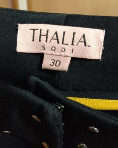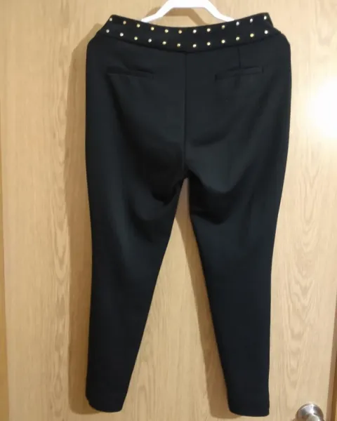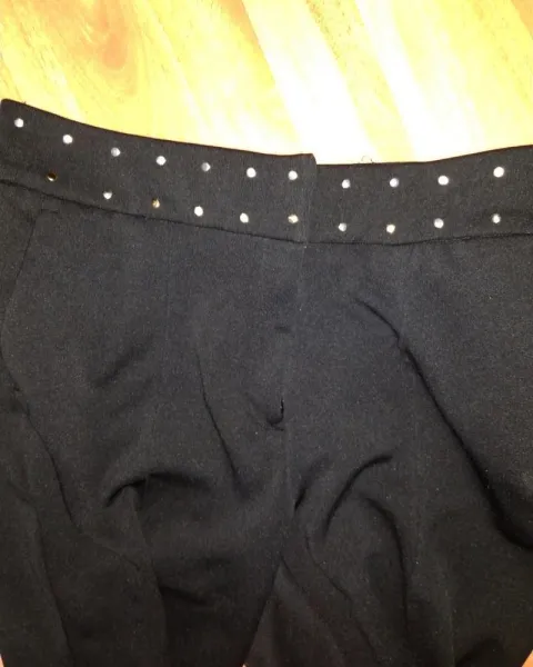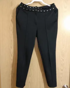 Pantalón negro. Pantalón negro 92% poliéster, 8% elastano, talla grande, 80cm de cintura y 90cm de largo, con adorno en la cintura