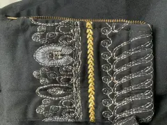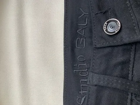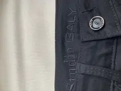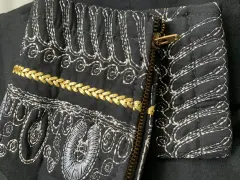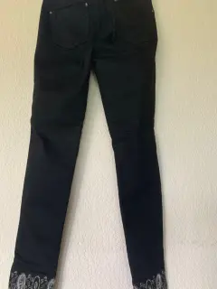 Pantalón negro con detalles. Pantalón negro entubado, con detalles bordados en el bajo de la pierna, con cierres en los tobillos