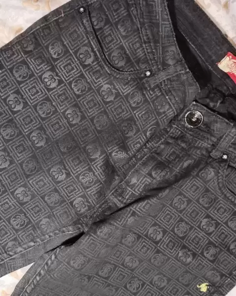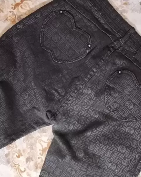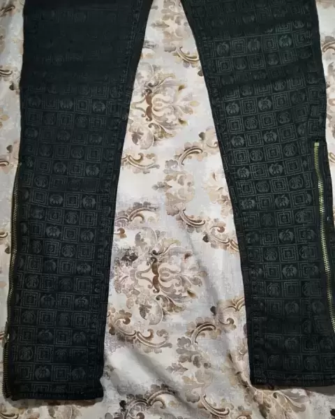 Pantalón negro estampado (9) o (M). Pantalón estampado totalmente en negro, con cierres a partir de rodilla cintura45cm, Cadera 55cm, largo100 super cute. Es talla 9.