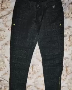 Pantalón estampado totalmente en negro, con cierres a partir de rodilla cintura45cm, Cadera 55cm, largo100 super cute. Es talla 9.