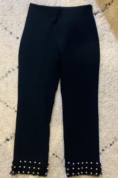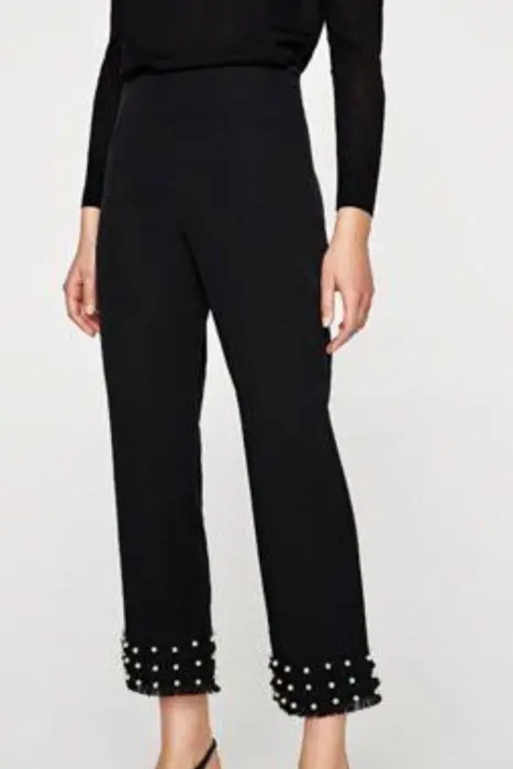 Fabuloso, elegante y formal pantalón de Zara Basic con un toque de perlas en la parte inferior que le dan un giro muy chic.Cierre invisible en el costado izquierdo.