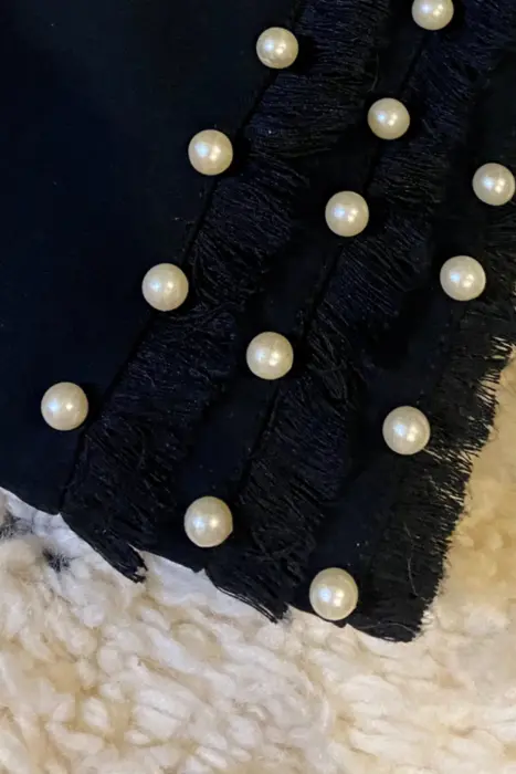 Pantalón negro Zara perlas formal. Fabuloso, elegante y formal pantalón de Zara Basic con un toque de perlas en la parte inferior que le dan un giro muy chic.Cierre invisible en el costado izquierdo.