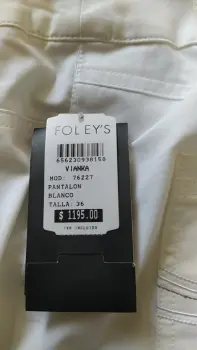 Pantalón Nuevo con etiquetaMarca FOLEYSColor Blanco, fino bordado en bolsas traseras Talla 36Buenas condiciones