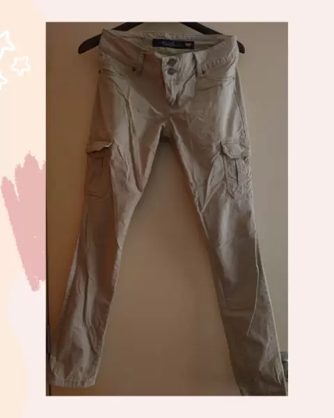 Preciosos pantalones OGGI jeans color beige a la cadera talla 9. Las bolsas de enfrente de la parte superior son solo costura, sin embargo las de atrás son reales, tiene bolsas a los costados sin ningún detalle, sin uso, sin manchas de ningún tipo, sin enmendaduras excelente condición y excelente conservación. Tela importada de Pakistán, 97% algodón 3% elastano, la tela es preciosa no rígida como una mezclilla por lo cual es fácil de lavar. Simplemente hermoso.