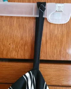 Mono de pierna ancha color negro y franjas blancas, de tirante ajustable