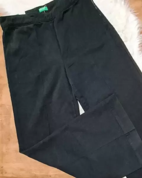 pantalon palazzo Benetton. Es color negro por la luz sale mas claroEs talla 10 super acampanado!!! Es a la cinturaMedidas: cintura 39 cm, cadera 53cm, largo 114cm, no estira tiene cierre a un costado tela tipo gabardina gruesa
