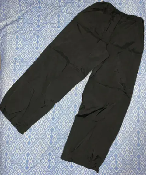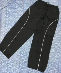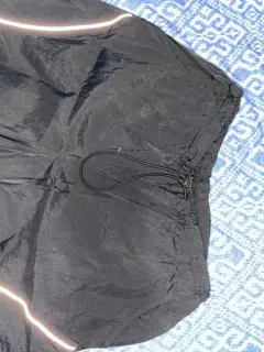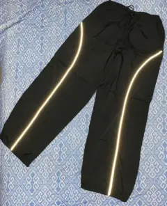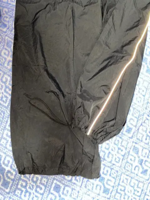 Pantalón parachute. Está muy cool, pero me quedó algo chico de lo largo:( . Tiene dos líneas reflejantes de luz en la parte de adelante. De largo mide 98 cm. Se puede ajustar de lo ancho de caderas y pies. Tiene bolsillos.