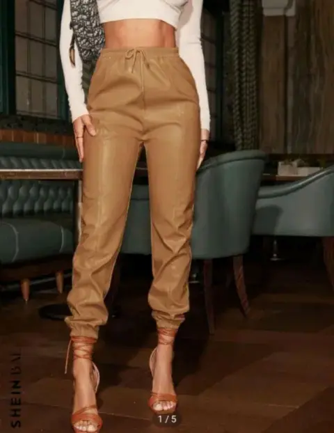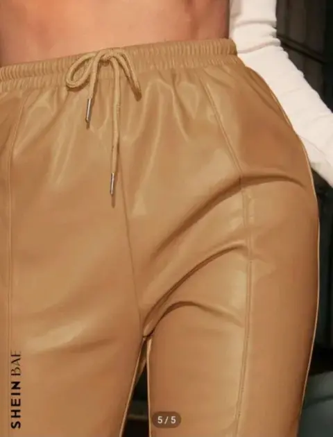 Lindo pantalón PU alto con cinta para nudo en tono camel, la parte interna es con felpa y su talla es amplia, puede quedar a una 7/9 aprox. 🫰Esta totalmente nuevo y por debajo de su precio.