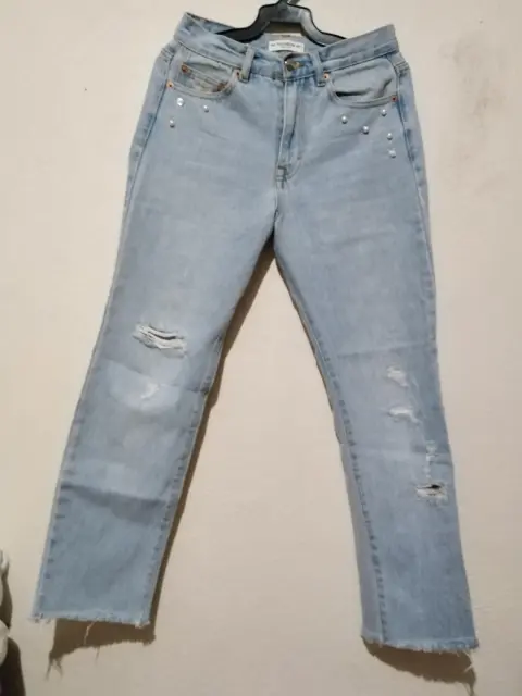 Pantalón marca Pull&Bear corte Mom, talla 24, perlas afuera de los bolsos, sin detalles o desperfectos.