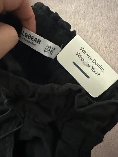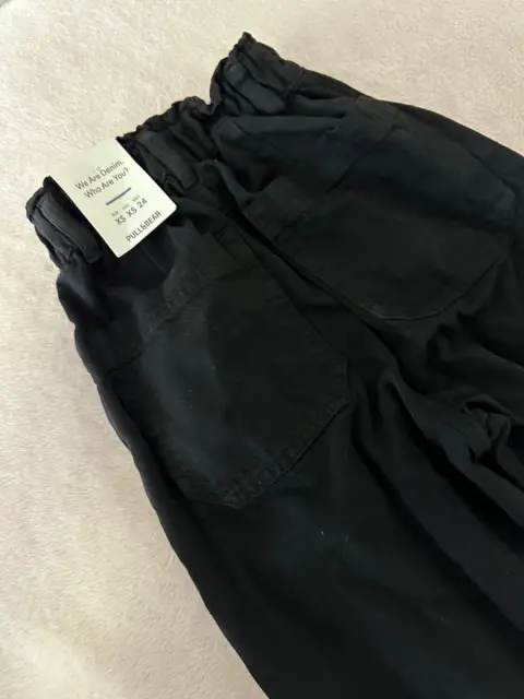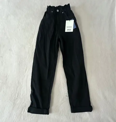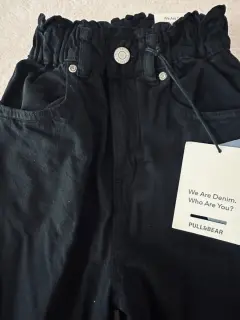 Pantalón de mezclilla color negro recto NUEVO y con etiquetas. La etiqueta dice $749.Tiene un detalle rasgado por dentro del pantalón en el elástico de la cintura