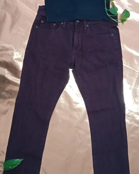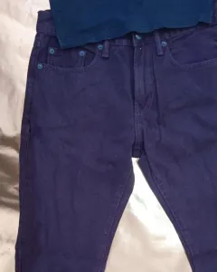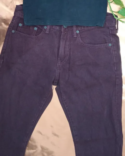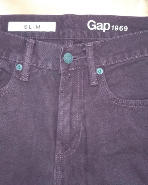 Pantalón de mezclilla recto color vino marca GAP, talla 5-7. Blusa negra y cazadora vino de regalo.Cintura: 76cmTiro: 26cmCadera: 94cmLargo: 96cm