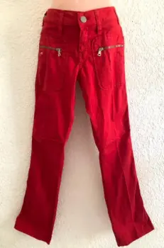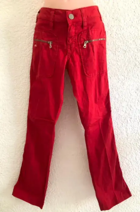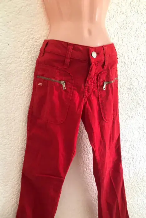 Pantalón rojo con bolsa con cierres al frente, talla S(26). Es de miss sixty. Esta muy lindo.
