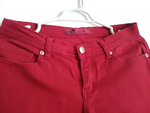 Pantalón rojo intenso, marca U-5,, talla 7, dos puestas, tiro delantero 19cm, largo 98cm