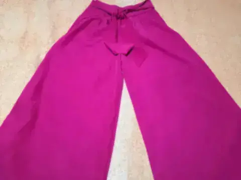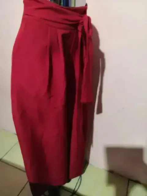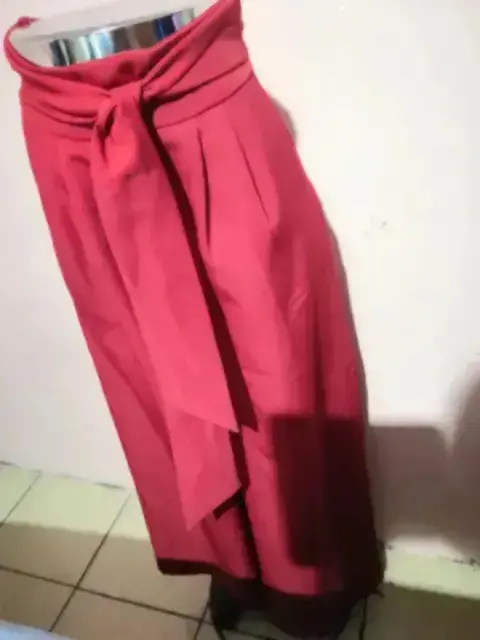 Pantalón rojo oscuro de pierna ancha. De tela fluida da entre talla 34 a 36 el tono es oscuro y la tela no transparenta, nuevo sin detalles, no cuenta con bolsas pero el nudo se puede acomodar a gusto del usuario