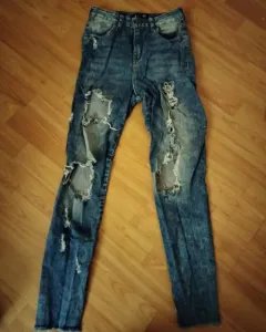Pantalón roto, no tiene tejido en las partes rotas, buen estado