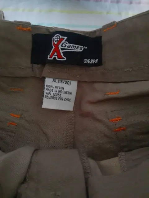 Pantalón sport color café 100% Nylon la etiqueta dice talla XL pero pienso que es como talla 7 tal vez , de cintura mide aprox 82cm. Y de largo aprox 100cm.