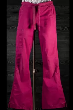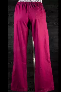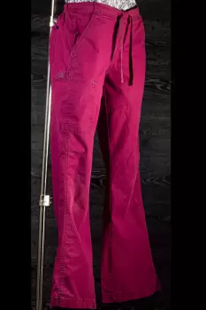Pantalón color vino, estilo informal. Talla xs, 35 cm de cintura (un lado), estira hasta los 39 cm, tiene 45 cm de cadera (un lado) y 95 cm de largo.