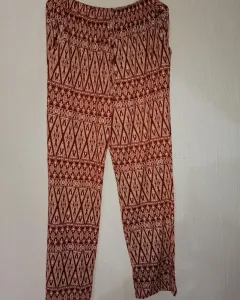 Cómodos pantalones acampanados, 100% poliester, resorte en la cintura y cintilla.
