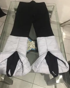 Excelente pantalón térmico para nieve vintage,ideal para motociclista también, para fríos extremos, color n su mayòn en la parte de abajo para que no se suba, súper cómodo , está echo de POLIÉSTER,NYLON Y LYCRA TALLA 32 mide de cintura 41cm de esta parte no estira, mide de cadera 46 cm de esta parte estira un poco y de largo 105cm con todos sus cierres funcionando