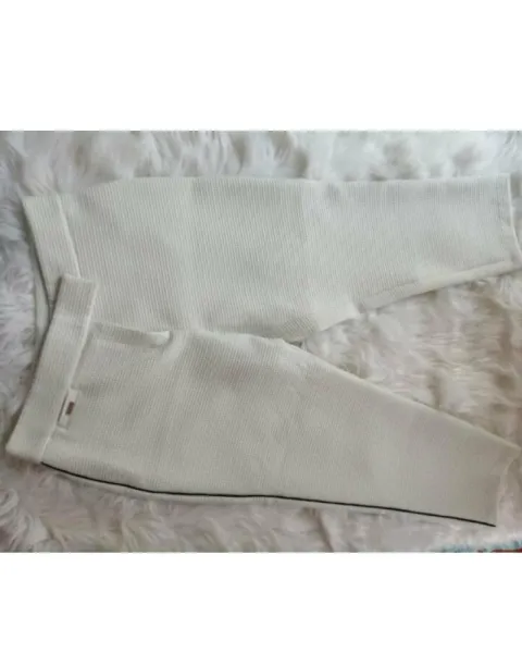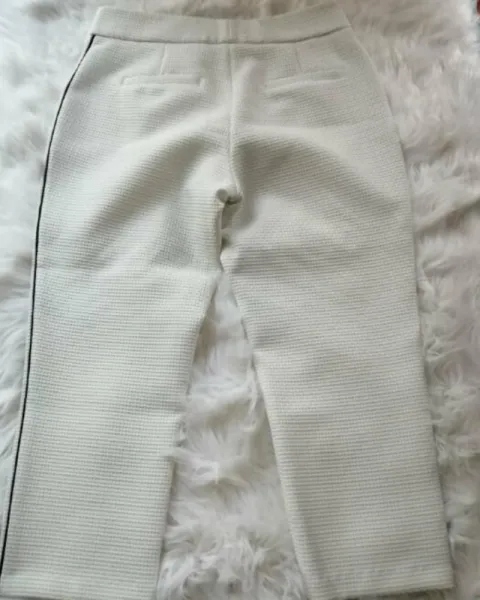 Pantalón tipo capri tela cuadriculada con líneas negras a los costados. Es amplio