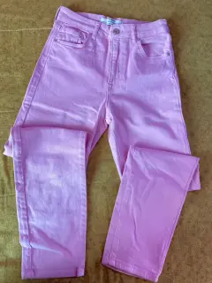 Pantalón tiro alto rosa. Pantalón de uso color rosa, no tiene. Ningún detalle, la mezclilla no está deslavada. Se encuentra en buenas condiciones.