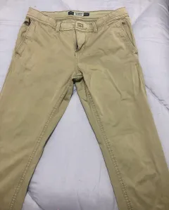 Pantalón a la cadera, tipo gabardina, entubado, talla 24MEX