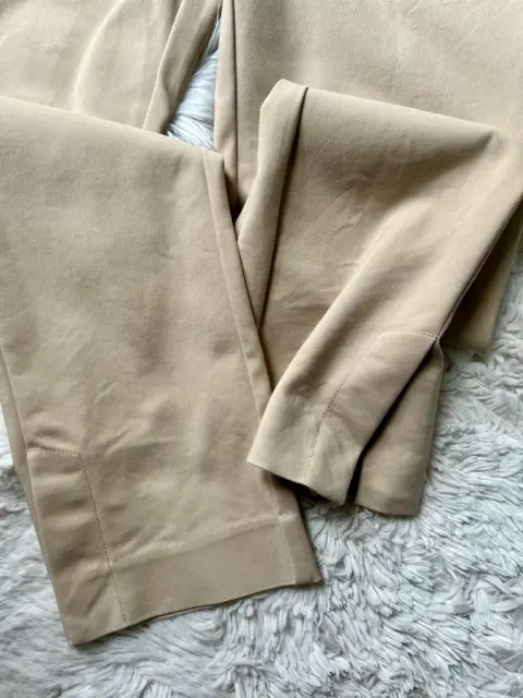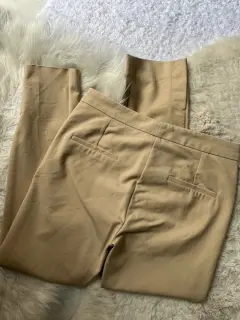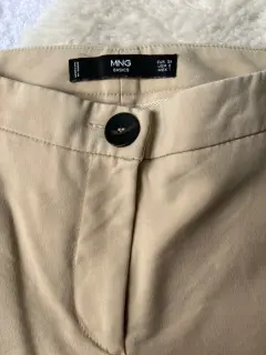 Pantalón de gabardina de Mango. Color beige, la tela tiene un poco de strech. Es de cintura un poco baja. Tiene abertura en tobillo
