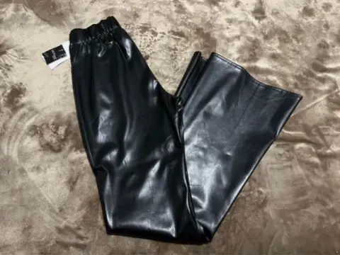 Pantalón vinipiel acampanado. Talla S, horma super lindo. Nuevo con etiqueta. Corte a la cintura sin bolsas.