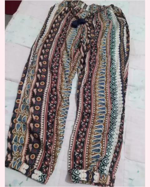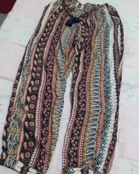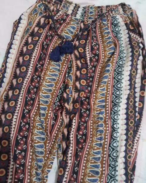 Pantalon hippie chic estampado con cinturón agregado elástico en los tobillos buen estado solo una puesta talla mediana pero puede quedar tambn a chica