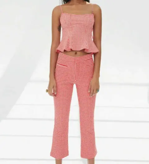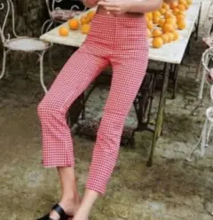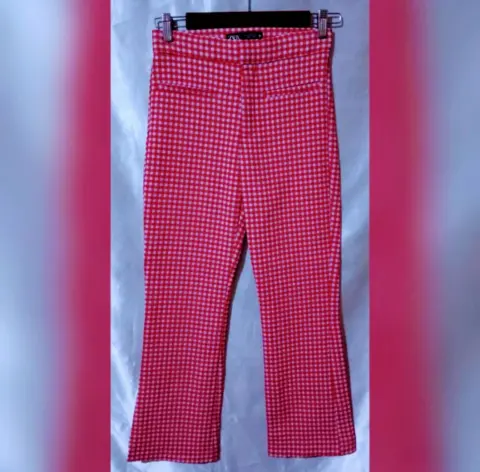 Pantalón ZARA cuadrado blanco con rojo, pierna recta y ligeramente acampanada, talle alto.Talla XSMedidas tomadas por un solo lado*Cintura 33 cm*Largo 89 cm